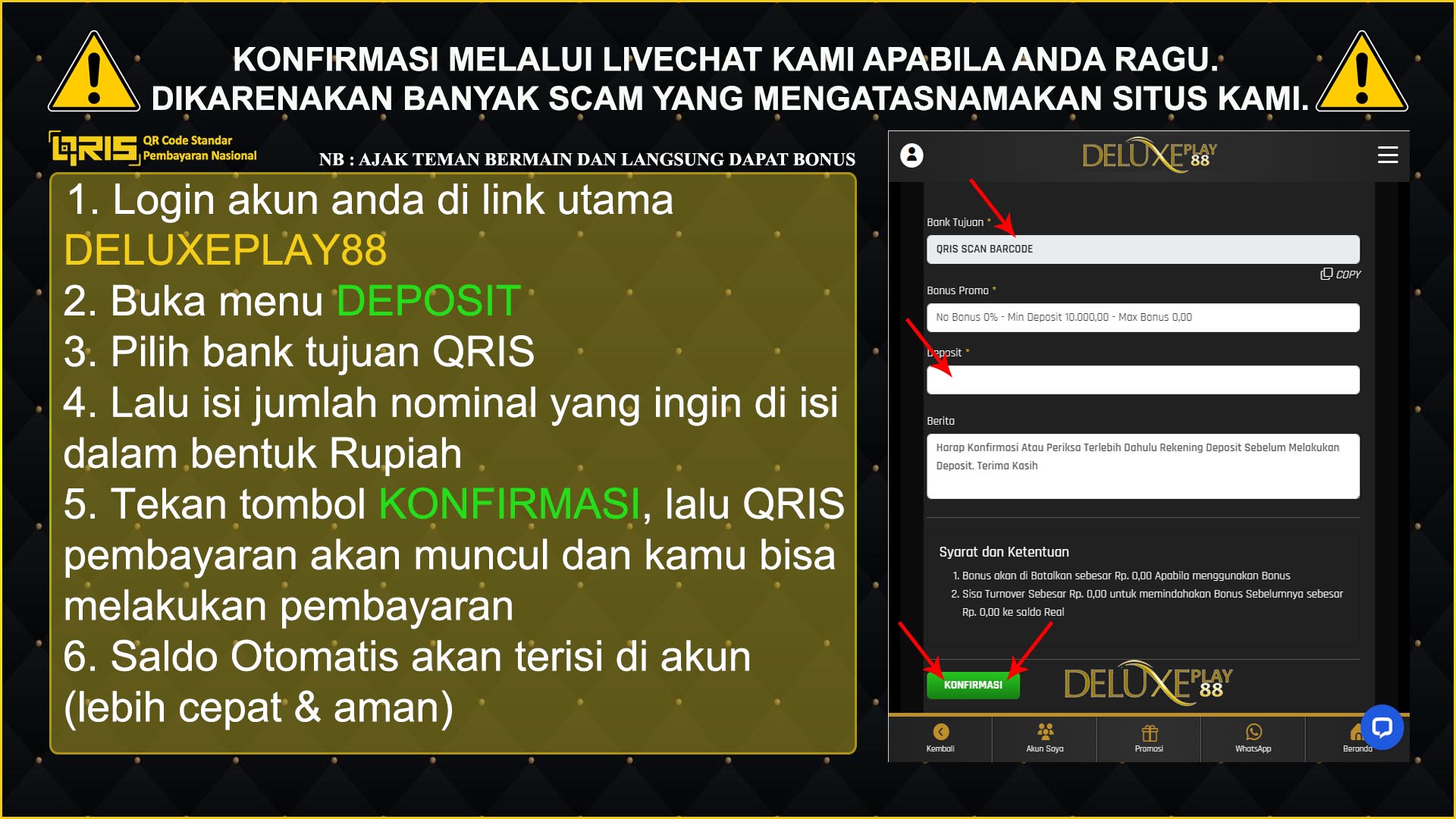 DELUXEPLAY88 telah menggunakan sistem otomatis, sehingga DEPOSIT - WITHDRAW akan sangat cepat.